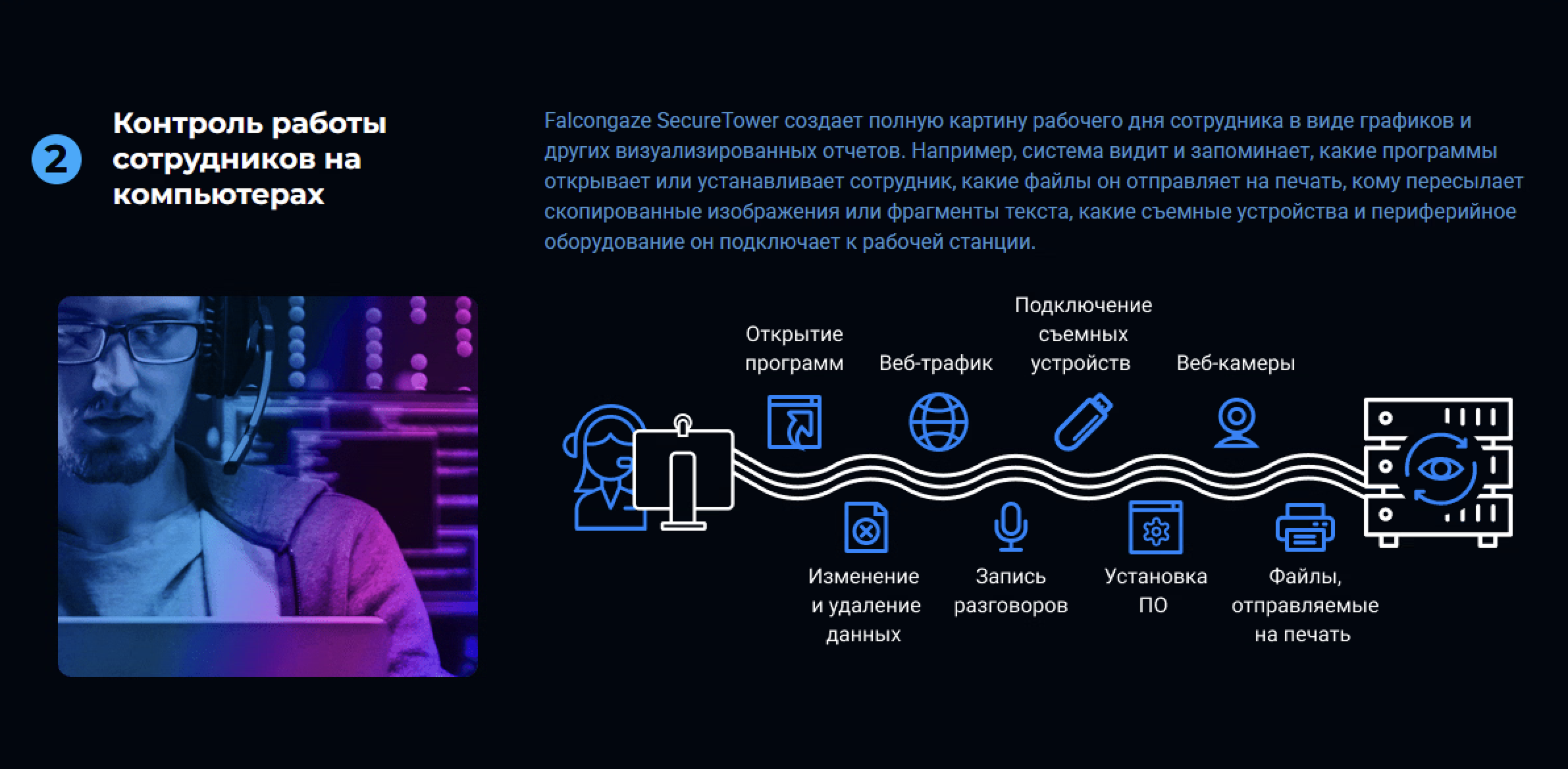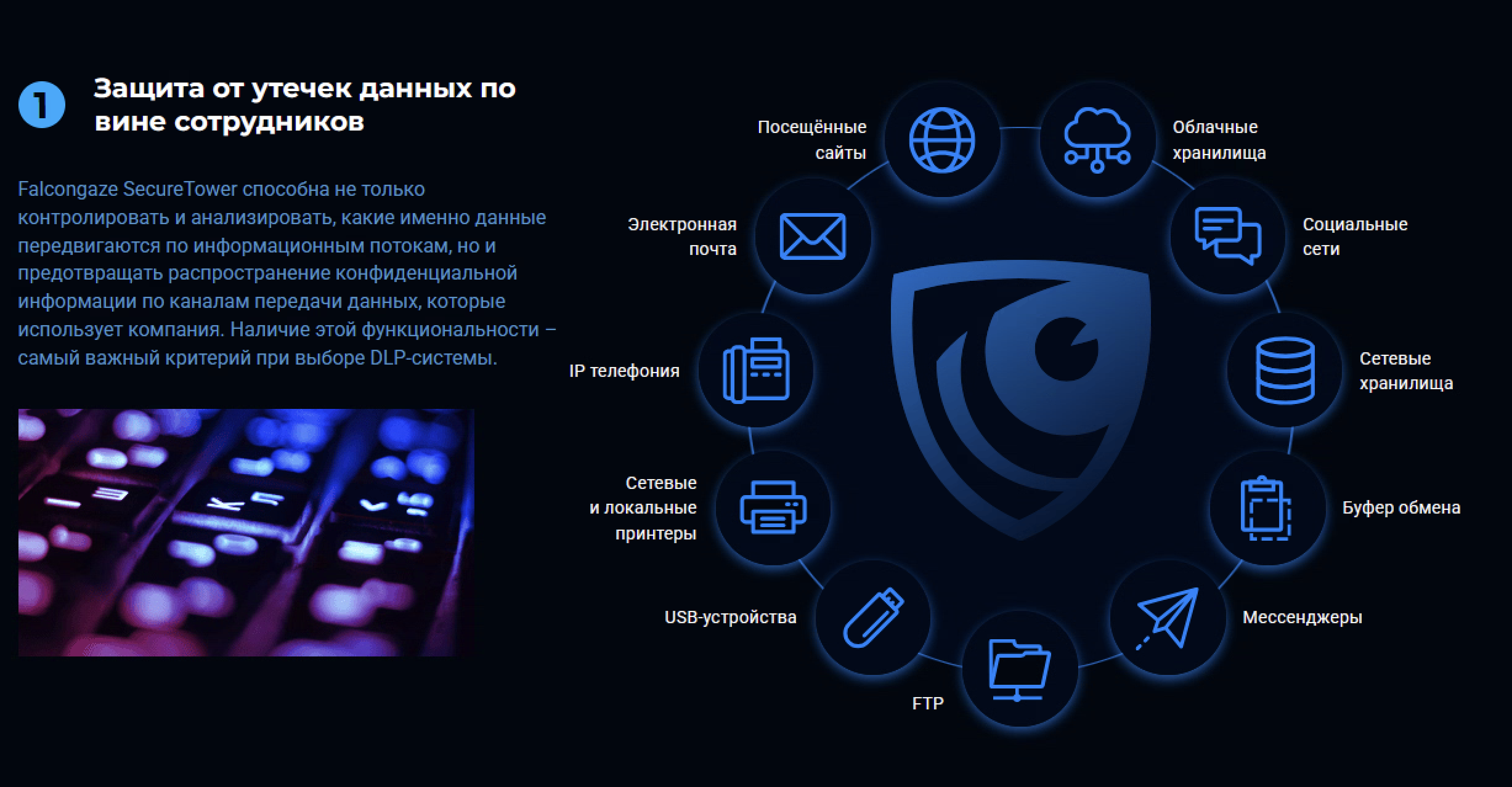 Falcongaze SecureTower представляет собой комплексное решение класса DLP (Data Loss Prevention), разработанное для защиты конфиденциальной информации от внутренних угроз и несанкционированного распространения. Система обеспечивает многоуровневый контроль информационных потоков и мониторинг действий пользователей в корпоративной сети.