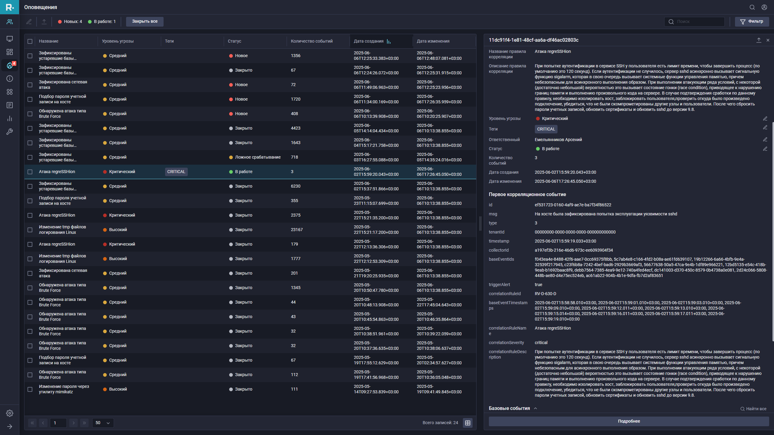 Встроенные 600+ правил корреляции для выявления сложных атак
