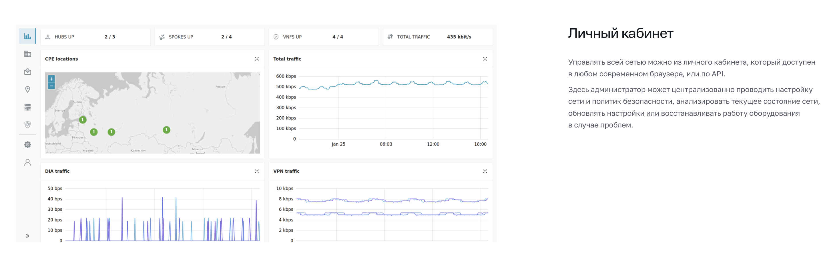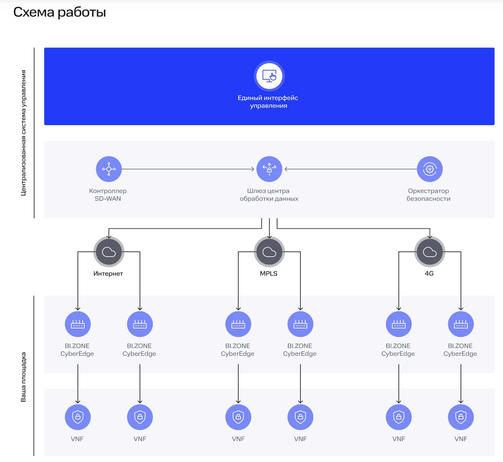 Главным преимуществом Secure SD-WAN является объединение сетевых функций и безопасности в едином решении, что значительно упрощает развертывание и управление распределенной инфраструктурой. Платформа обеспечивает: