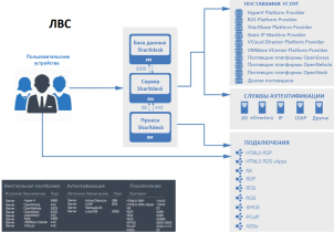 Платформа предоставляет инструменты для автоматического развертывания виртуальных рабочих столов и управления доступом к удаленным ресурсам. Система интегрируется с различными источниками аутентификации, включая Active Directory и другие службы каталогов. Безопасный доступ обеспечивается через защищенные соединения, а гибкие политики управления позволяют настраивать права доступа в зависимости от роли пользователя.