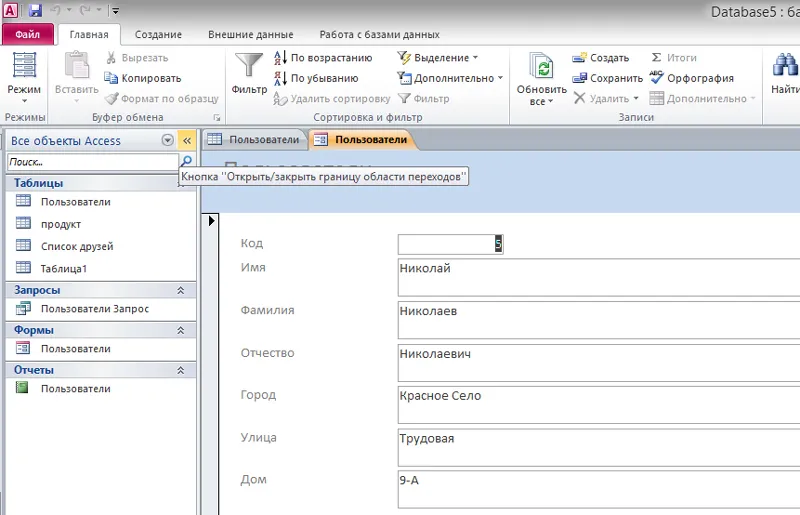 РЕД База данных