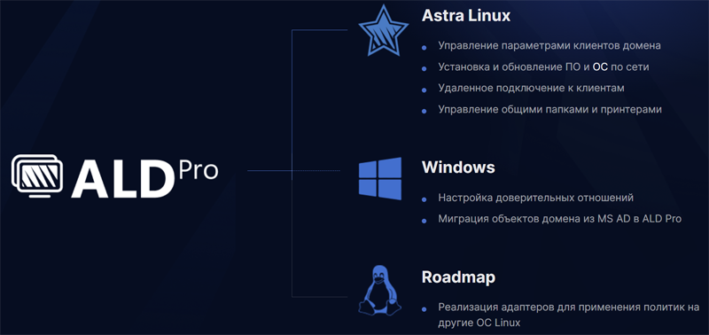 Платформа предоставляет полный набор инструментов для автоматизированного администрирования доменной среды, включая управление групповыми политиками, мониторинг производительности серверов в реальном времени, управление правами доступа пользователей и автоматическое развертывание обновлений программного обеспечения.
